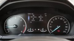 SOLIDA Per fortuna, su strada non tutto si riduce ai prodromi della guida autonoma. Se sotto il cofano c'è il 1.5 diesel da 100 cv, la Ford EcoSport può sempre contare su un valido turbodiesel. Non è dei più elastici ma rimane parco nei consumi: fa tranquillamente i 16/17 km con un litro nel misto in abbinamento con il cambio manuale a sei marce, dagli innesti secchi e precisi. Tra le curve è facile da gestire e discretamente precisa - un po' di rollio, per via che cammina coi tacchi e ha il baricentro alto, va messo in conto. Viaggiando è anche un'auto poco rumorosa, per il suo genere, ma è costretta a centellinare i centimetri. Dietro, lo spazio per i passeggeri è appena sufficiente. Il bagagliaio (356 litri), invece, è nella media ma si riempie bene: ha una forma regolare e gioca il jolly del piano regolabile.