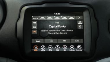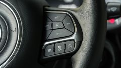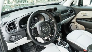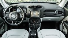 PIATTA IN CURVA Lo sterzo non è particolarmente diretto - e del resto nemmeno me lo aspetto da un fuoristrada - ma la compostezza nei rapidi cambi di direzione e la resistenza al rollio sono formidabili, con l'aiuto delle gomme Bridgestone Dueller H/P Sport 235/45 da 19 pollici che trovo sulla Renegade in prova. Gli aiuti alla guida ADAS tendono a intervenire troppo spesso e in modo invasivo, se mi accontento delle regolazioni standard, ma nei menu dell'infotainment ne trovo uno che m i permette di confogurarli a piacimento e risolvere il problema. Peccato che lo schermo touch da 8,4 pollici a centro plancia non sia sempre reattivo come un vero tablet. Per questo apprezzo ancora di più la presenza di comandi fisici per il volume dell'impianto audio e per le regolazioni del climatizzatore.