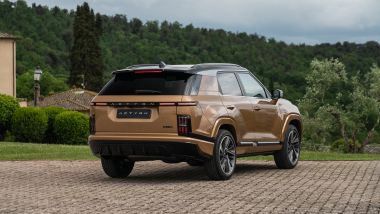 Il retrotreno enfatizza infne un senso di solidità con linee perpendicolari e luci orizzontali che accentuano la larghezza. Come per il frontale, i gruppi ottici richiamano la bandiera coreana, unendo stile contemporaneo ed heritage.