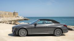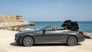 La Mercedes CLE Cabrio costa circa 7.000 euro in più rispetto alla Coupé, con prezzi che partono da 68.616 euro per la motorizzazione CLE 180 a benzina da 170+23 cavalli, a cui preferire sicuramente nel basso di gamma il motore diesel CLE 220 d con 197+23 cavalli con più potenza e più coppia (440 Nm vs 250 Nm) e prezzi a partire da 71.056 euro. Il prezzo della CLE Cabrio 300 4Matic parte da 82.524 euro fino al top, la versione AMG 53 4Matic+ (449+23 cv) che parte da 109.974 euro e che condivide il motore tremila sei cilindri con la 450 4Matic (381+23 cv, da 99.055 euro). Anche la CLE Cabrio segue la politica Mercedes con tanti allestimenti (sei per tutte, eccetto la AMG che ne prevede due) che coprono il 95% delle scelte dei clienti, per includere gli accessori nel prezzo di acquisto e quindi nel valore residuo dell’usato.
