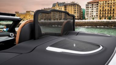 VENTO (NON) TRA I CAPELLI In Mercedes poi hanno prestato molta attenzione a non scompigliare le chiome indirizzando a dovere i flussi di aria a capote aperta con il sistema Aircap. All’immancabile frangivento tra i poggiatesta dei sedili posteriori la Mercedes CLE Cabriolet aggiunge anche uno spoiler anteriore: al premere di un pulsante, insieme al frangivento, si solleva la cornice superiore del parabrezza. Un'ottima idea dal punto di vista funzionale, ma esteticamente ricorda lo spoiler montato sui furgoni per rendere il cassone più aerodinamico. Estetica a parte, la protezione è eccellente per i posti anteriori, dotati anche dell’Airscarf, la sciarpa virtuale che, grazie a un flusso di aria climatizzata che esce dai poggiatesta, contribuisce a rendere la CLE Cabrio più quattro stagioni possibile. Se ai posti anteriori il vento nei capelli si sente davvero poco, ai posti posteriori ci si rinfrescano le idee, anche se senza turbini di aria fastidiosi, a causa anche della seduta un po’ alta, ottima per vedere bene la strada, meno per rimanere nella bolla protetta creata dall’Aircap.