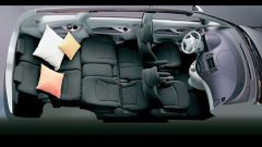 All'interno c'è spazio davvero per sette, con posti comodi su tutte le tre file dei sedili. Sulla terza fila si possono sedere senza troppo problemi adulti fino al metro e ottanta e anche raggiungere i due posti posteriori singoli è molto facile, meglio che su una tre porte, con i sedili centrali (divisi 40/60%) che scorrono senza sforzo in avanti fino alla prima fila.ULTIMA FILA