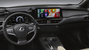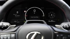 LE DIMENSIONI CHE CONTANO Comodi i sedili, specie quelli anteriori dal taglio sportivo, peccato che lo spazio a bordo sia risicato per un'auto lunga 4,45 metri: per chi siede in seconda fila i centimetri non abbondano e il bagagliaio si ferma a 315 litri, con il doppiofondo aperto, ma una forma non molto regolare. La cappelliera rigida qui è sostituita da un pannello in tessuto, che concede una certa flessibilità di carico, ma non permette di appoggiarci sopra nulla: penso al tiramisù preparato da mia figlia per il pranzo dalla nonna, che dovrò sistemare in altro modo. Bene invece plancia e comandi, con display più grandi che in passato per strumentazione e infotainment: entrambi da 12,3 pollici, nell'allestimento top di gamma. Android Auto e Apple CarPlay sono di serie e così pure l'assistente virtuale che risponde al comando di attivazione ''Hey Lexus''. Il navigatore che funziona anche senza colegamento a Internet è invece esclusivo dell'infotainment Pro, top di gamma.