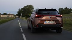 C'è un nuovo colore in gamma, il bellissimo Sonic Copper, e l'opzione bicolore disponibile per più tinte, ma a distinguere da fuori la nuova Lexus UX 2024 è solo la targhetta del modello 300h, che sostituisce la precedente 250h e indica un aumento delle prestazioni. Quello del crossover giapponese rimane un design molto caratterizzato, con il frontale aperto dall'ampia griglia e segnato dai fari a forma di freccia. Le fiancate sono scolpite, elaborate, così come il posteriore, dove le luci disegnano piccole creste con funzione apparentemente legata all'aerodinamica, verso i lati esterni dell'auto. Belle le proporzioni, ma forse semplificare qualche dettaglio, come le protezioni a sbalzo sui parafanghi, avrebbe potuto rendere la UX più insensibile al passare del tempo.