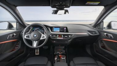 GLI INTERNI Uno dei punti forte di questa Serie 2 è la posizione di guida: comoda e non incassata, anzi, oserei dire piuttosto alta e tale da non far rimpiangere quella “dominante” dei Suv. Dentro la Serie 2 Gran Coupé è tutto dove deve stare: non c’è alcuna differenza nel layout dalle altre BMW. Il Live Cockpit mi offre tutte le informazioni necessarie e cambia grafica a seconda della mappatura in cui mi trovo, l’Infotaiment è ricco di funzionalità: ci vuole un po’ di dimestichezza per poterlo sfruttare a pieno. Dopodiché potrete decidere se attivare le funzioni con il comando vocale, con il Gesture control, con il touch screen da 10,25” o con l’intramontabile rotella posta comodamente sul tunnel centrale, a pochi centimetri dalla leva del cambio. La corona ben imbottita è ergonomica nell’impugnatura, e i comandi al volante sono intuitivi da utilizzare.