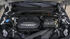 TUTTA DA GUIDARE Trovo le prime curve, che raccordo in sequenza con un buon ritmo, e la prima cosa che noto è il modo in cui la M235i tiene la traiettoria. L’anteriore è ben piantato a terra e lo sterzo M Steering è più diretto di quello di serie provato sulla 220d (anche se non c’era, onestamente, non ne sentivo la mancanza). Il merito va anche al differenziale autobloccante Torsen all’anteriore e alla funzione di torque vectoring davvero ben calibrata. La frenata è decisa e l’impianto non mi abbandona nemmeno quando lo stresso ripetutamente in una serie di rettilinei e tornanti. Nei cambi di direzione l’assetto sportivo e ribassato sostiene a dovere la BMW, il tutto mentre vengo comodamente avvolto dai sedili sportivi. In uscita di curva sfrutto la progressione offerta dal 2.0 turbo: sotto ai 2.000 giri/min è un motore lineare e fluido, ma è poco prima dei 4.000 giri/min che esplode in una progressione che mi spinge fino a 6.000 giri/min. Decisamente buona l’accoppiata tra motore e il cambio a otto rapporti Steptronic con convertitore di coppia, che si fa trovare sempre pronto sia in salita sia in scalata. Quando si alza il ritmo, mi dimentico completamente di essere a bordo di una Serie 2 Gran Coupè. Nonostante il baricentro un po’ alto, la M235i sguscia tra una curva e l’altra con pochissimo rollio e una precisione degna del reparto Motorsport di BMW. Affronto le curve con lo stesso approccio di un’auto a trazione anteriore, ma a stupirmi negli ingressi più aggressivi è l’assenza di sottosterzo che, se si presenta, viene presto compensato dalla trazione xDrive che ripartisce il 50% della coppia sull’asse posteriore.
