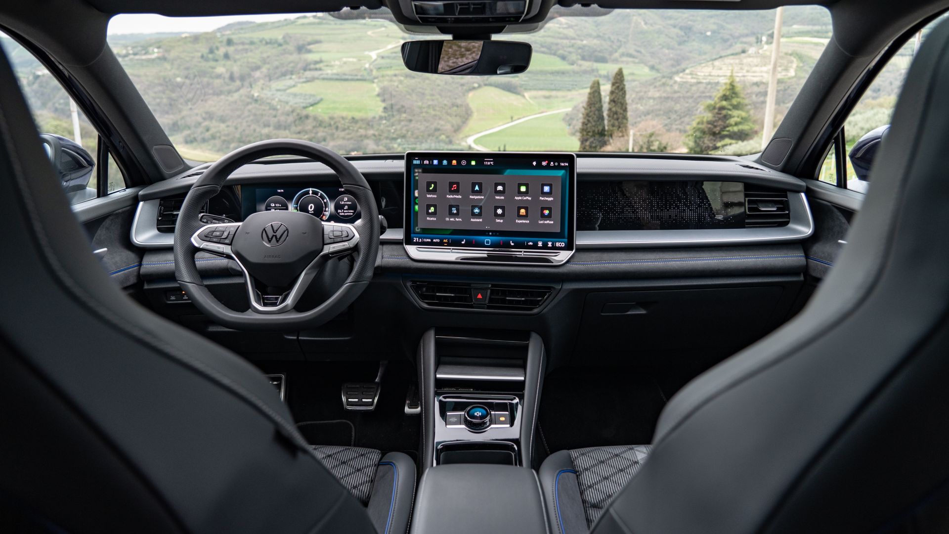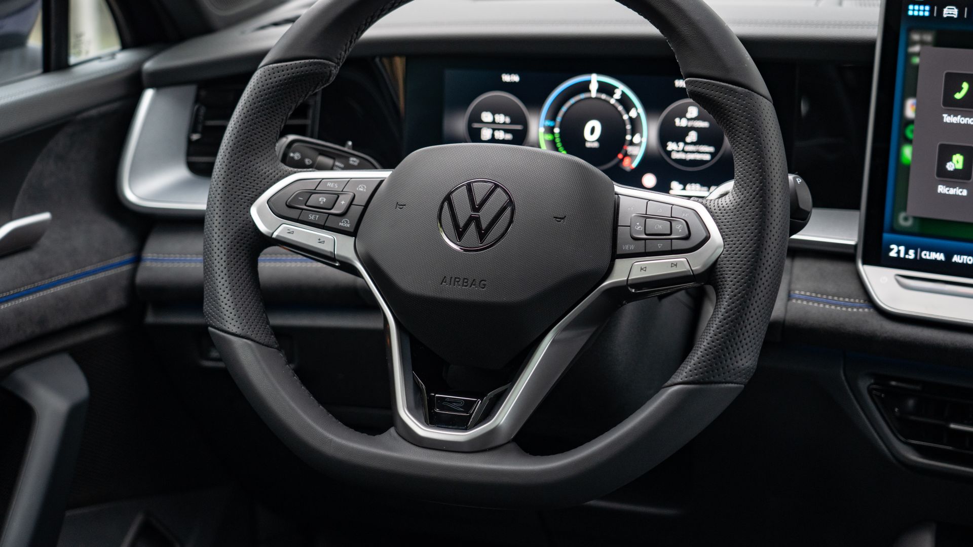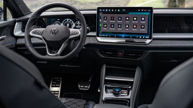 Spiaccicati a Tiguan sono semmai il volante, il Digital Cockpit Pro da 10 pollici di serie, il maxi display centrale a sbalzo da 12,9 o 15 pollici a seconda dell'allestimento.