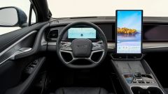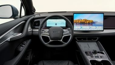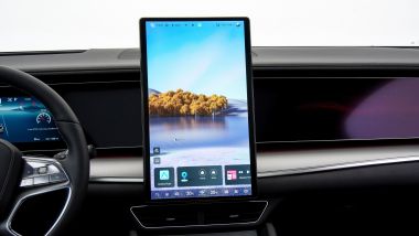 L'INFOTAINMENT Personalmente preferisco tenerlo in orizzontale, lo schermone, visto che in verticale ruba qualche centimetro di visuale fuori dall'auto, ma quando uso il navigatore, metterlo ''in piedi'' mi offre uno sguardo più lungo sullo sviluppo del percorso programmato. L'infotainment ha un software proprietario, ma non mancano l'integrazione con Google - che aiuta il navigatore a trovare i punti di interesse sulla mappa - e la compatibilità con Apple CarPlay e Android Auto. Alla base della plancia trovo una piastra matrimoniale per la ricarica wireless: una delle due piazze è ventilata e ha una potenza da ben 50 W. Sotto di essa c'è una vaschetta portaoggetti a giorno con due prese USB-C, una 12V e un lettore di schede microSD. È capiente ma non comodissima da raggiungere quando ci siano i due sedili antreriori occupati: molto più pratico l'ampio vano sotto al bracciolo, va detto.