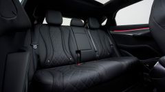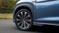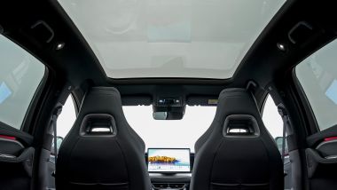 Mi siedo dietro al volante e mi accomodo sul bel sedile avvolgente rivestito in pelle, che ha un sapore sportivo per via del poggiatesta integrato nello schienale. È un po' più largo di quello che serve a me: si vede che è fatto per chi è più alto del mio metro e settantotto, e più robusto dei miei 83 chili. Più in basso di tanto, la seduta non scende e mi trovo sempre in una posizione panoramica che tanto piacerà agli amanti dei SUV. Sopra la testa, un enorme tetto trasparente da 2,1 metri quadri porta tanta luce in abitacolo e una tendina elettrica permette di oscurarlo nelle giornate troppo calde per stare in pieno sole. Le luci ambient, che possono essere regolate su 128 colori diversi, occhieggiano da dietro e attraverso la plancia. Scarsa la visuale posteriore, ma il sistema di telecamere a 360° aiuta a superare l'imbarazzo.
