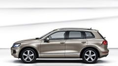 BIMOTOREDa subito è disponibile anche la Touareg Hybridche sceglie lo schema parallelo piuttosto che il più comune schema in serie dei due motori. Il motore a scoppio è il V6 3.0 TSI con compressore da 333 cavallia cui si abbina un motore elettrico a 38kW che, al banco, porta la potenza teorica complessiva a 380cv e una coppia massima di 580Nm. Secondo la teoria del sistema il motore elettrico spinge da 0 a 30 km/h, il V6 spinge da 30 a 50km/h, a 50km/h lavora l'elettricoe oltre i 50km/h insieme contribuiscono a rendere la guida più brillante e/o più efficiente a seconda della necessità.