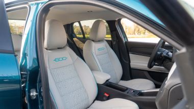 Il look ispirato all'eterna 500 le dà un forte family feeling, ma soprattutto le porta in dote un'innata eleganza, qui esaltata dal blu profondo della carrozzeria e dagli interni in ecopelle beige sapientemente impunturati dell'allestimento top La Prima. È un bel colpo d'occhio quello sulla Fiat 600 Hybrid, che esprime tutto il suo italian style infischiandosene delle sinergie industriali Stellantis, che le mettono sotto un pianale di derivazione francese: il look è quello giusto ed è talmente riuscito - fuori come dentro - da far perdonare le plastiche dure che troviamo in tutto l'abitacolo, plancia compresa: di morbido qui ci sono solo il volante e i braccioli anteriori, mentre i pannelli porta posteriori sono lasciati completamente a nudo con un effetto un po' cheap. Come sulla Ford, peraltro.
