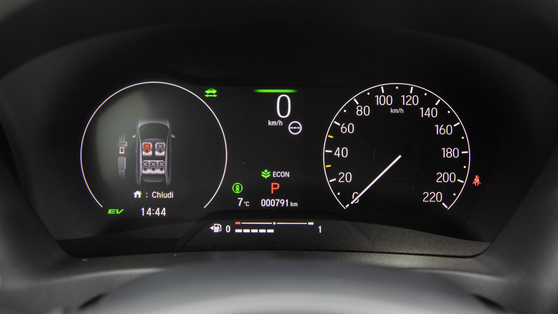 Poi ci sono le leve dietro al volante, che non servono per comandare una modalità sequenziale del cambio – che la Honda non ha – ma per regolare di fino la frenata rigenerativa (con la modalità Brake, invece, è tutto o niente).