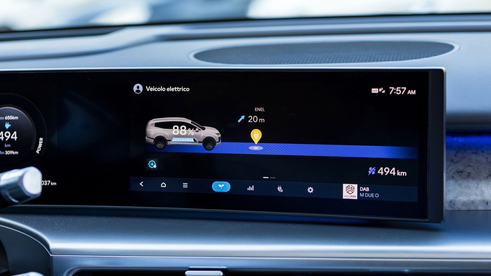 L'architettura a 800 V permette poi di recuperare fino a 430 km in 24 minuti da una presa a 350 kW in corrente continua. Un pieno da una wallbox o colonnina a 11 kW in corrente alternata richiede invece 10 ore.
