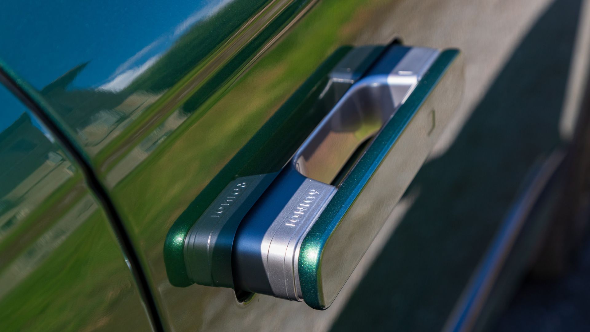 Linee tese e minimali, che sembrano di scuola inglese, trovano muscolarità nei parafanghi in bassorilievo, con una sottile linea spezzata a evidenziare i quarti posteriori, ma la coda rastremata e il parabrezza molto inclinato donano slancio alla gigantesca silhouette. Senza togliere nulla alla sua maestosità.