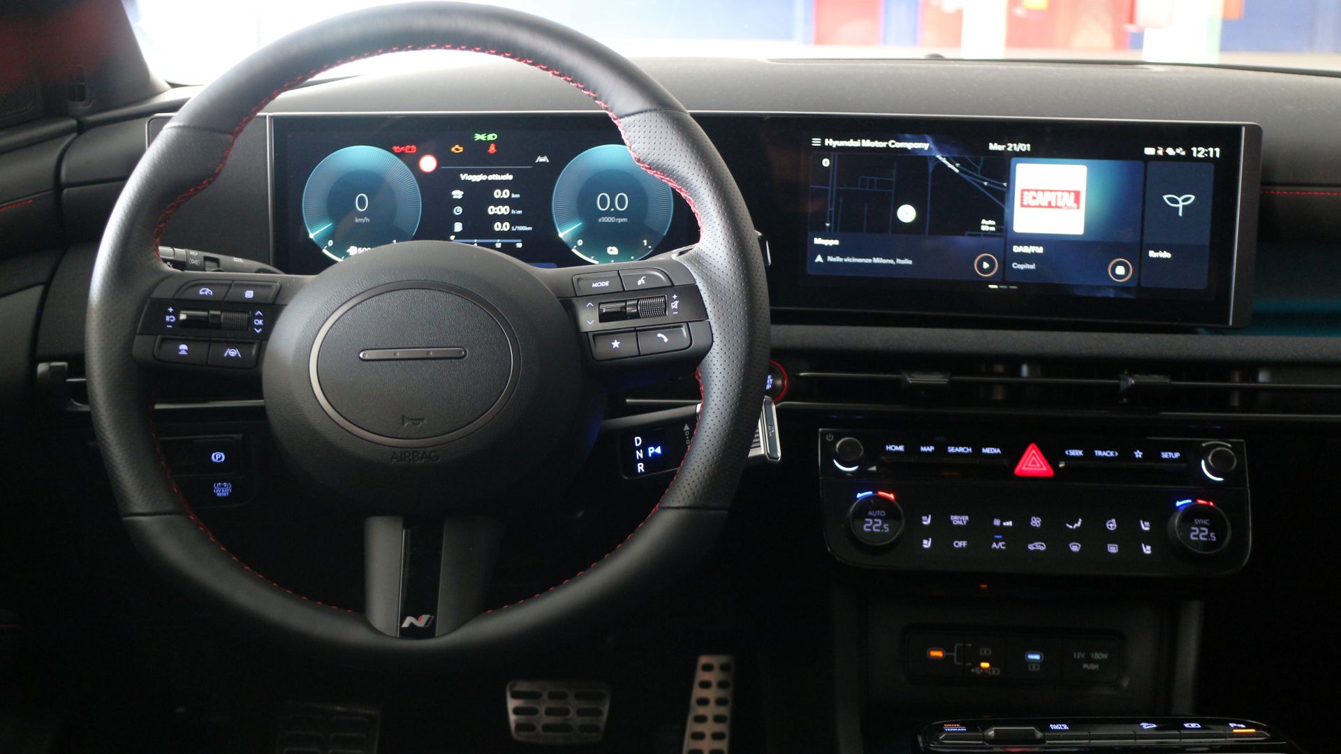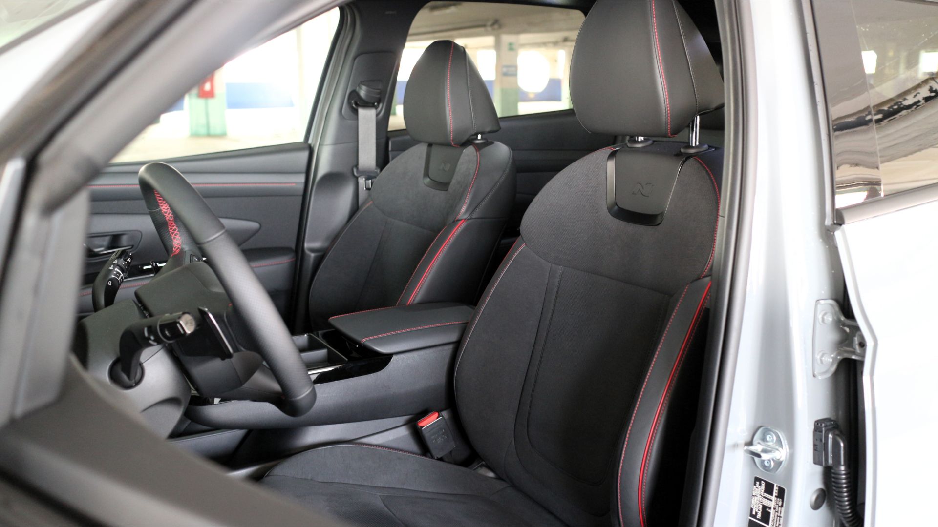 Dentro, la Tucson continua a convincere. L’abitacolo della versione in prova N Line mi accoglie con sedili in pelle e tessuto scamosciato, un design sportivo e una qualità percepita elevata. È un bel posto dove stare, che ti dà subito l'impressione di aver speso bene i tuoi soldi.