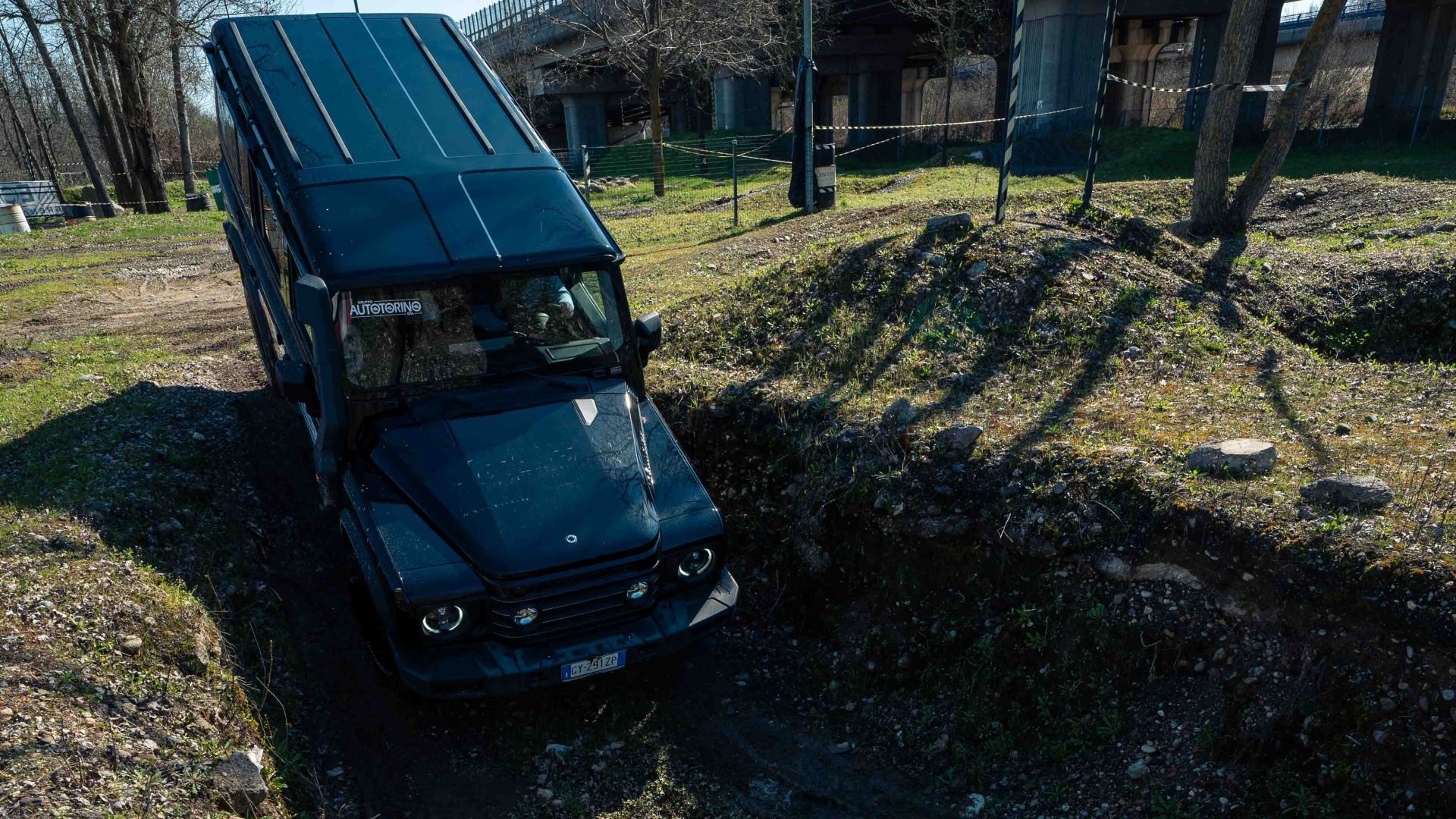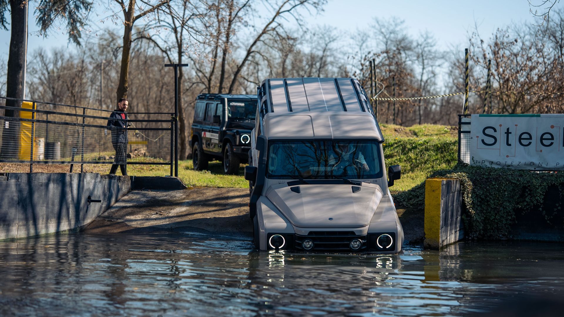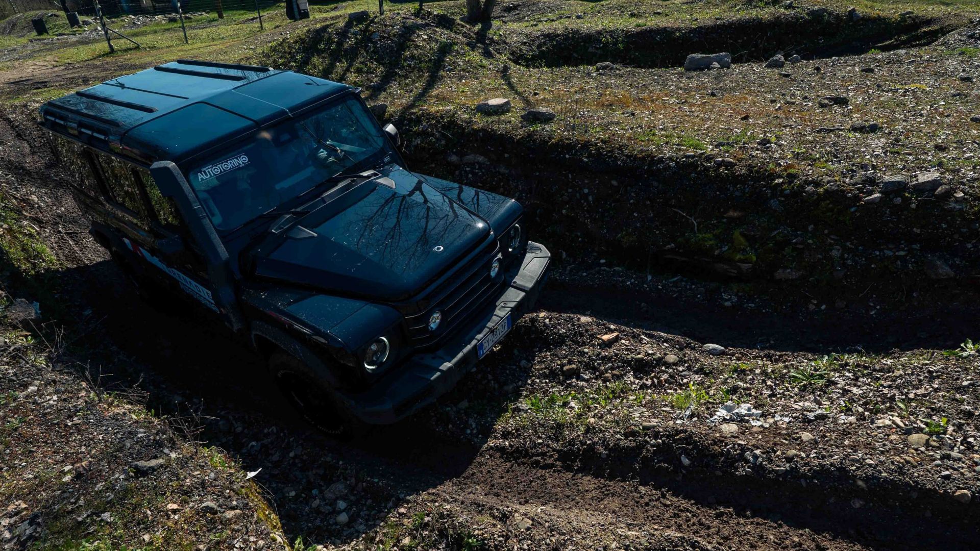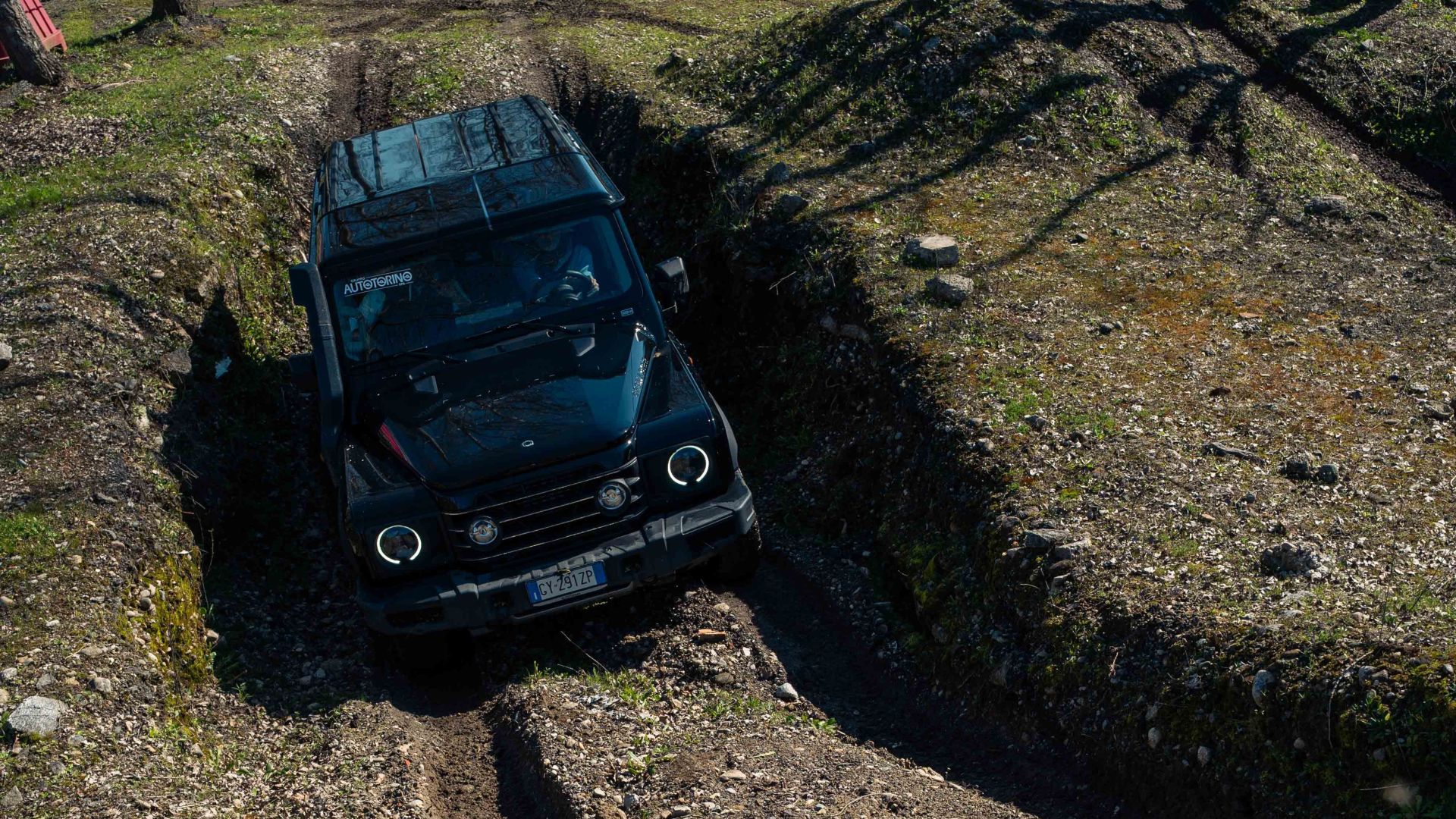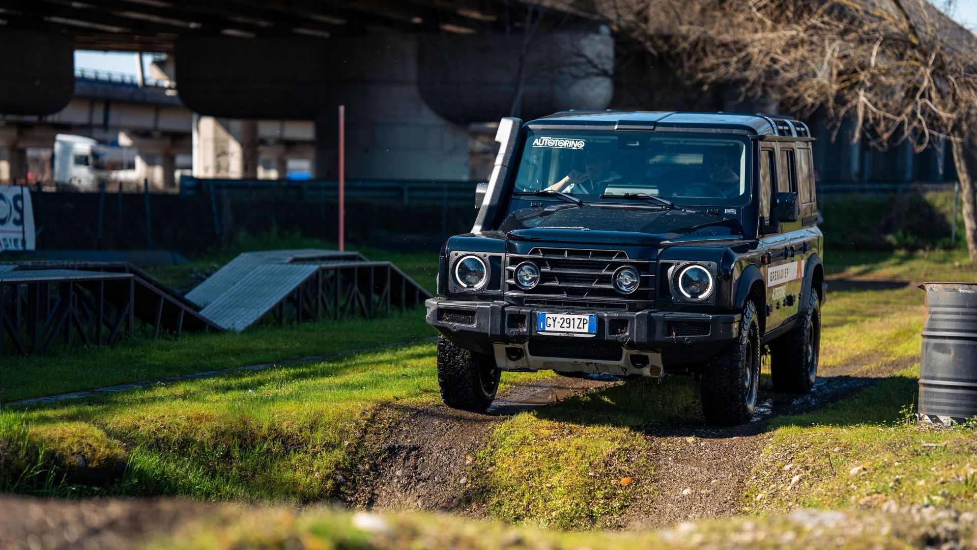 Il percorso del GO4 non è una passeggiata con ostacoli artificiali e naturali impegnativi. Guadi con l'acqua che lambisce il cofano motore, passaggi con inclinazione laterale fino a 25 gradi, abbastanza da far trattenere il respiro a chi non è abituato, ma decisamente lontani dai 45 gradi che sono il limite di ribaltamento del Grenadier. E poi, rampe e discese ripide dove il riduttore diventa il migliore amico che hai, pietraie e tratti di fango dove si capisce immediatamente perché esistono i blocchi sui differenziali.