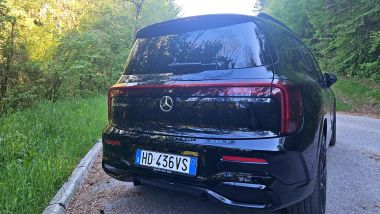 A seconda della versione scelta, i cerchi possono essere da 20 pollici e per chi cerca un look grintoso si può richiedere il SUV nella versione AMG Line. La linea del tetto è quasi piatta per massimizzare lo spazio a disposizione per la testa anche nella terza fila dei sedili, e termina con un piccolo spoiler. Dietro, spiccano i gruppi ottici a firma di L sdraiata.