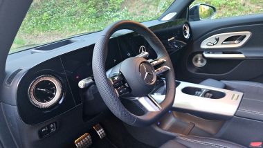 Tuttavia non ha senso utilizzarlo in Sport proprio perché non è la sua natura. Meglio lasciarlo in Comfort e godersi il viaggio. Lo si capisce anche dalla taratura dell'erogazione del motore. Niente calcio alla schiena come capita su alcune elettriche quando si preme con decisione sull'accelerazione, ma tutto molto più fluido e progressivo. E viaggiare non è certo un problema dato che nonostante le dimensioni importanti, la nuova GLB è una vettura che dispone di una buona efficienza. Merito del lavoro svolto da Mercedes su aerodinamica, powertrain e piattaforma. Nella prova abbiamo percorso 190 km tra urbano, extraurbano, autostrada e un po' di montagna. Ok, non è stata un prova specifica per i consumi ma possiamo dire che computer di bordo alla mano, alla fine abbiamo ottenuto un consumo pari a 17,9 kWh per 100 km. In ogni caso ci riserviamo di valutare meglio questo aspetto quando avremo la possibilità di provare più a lungo la nuova GLB.