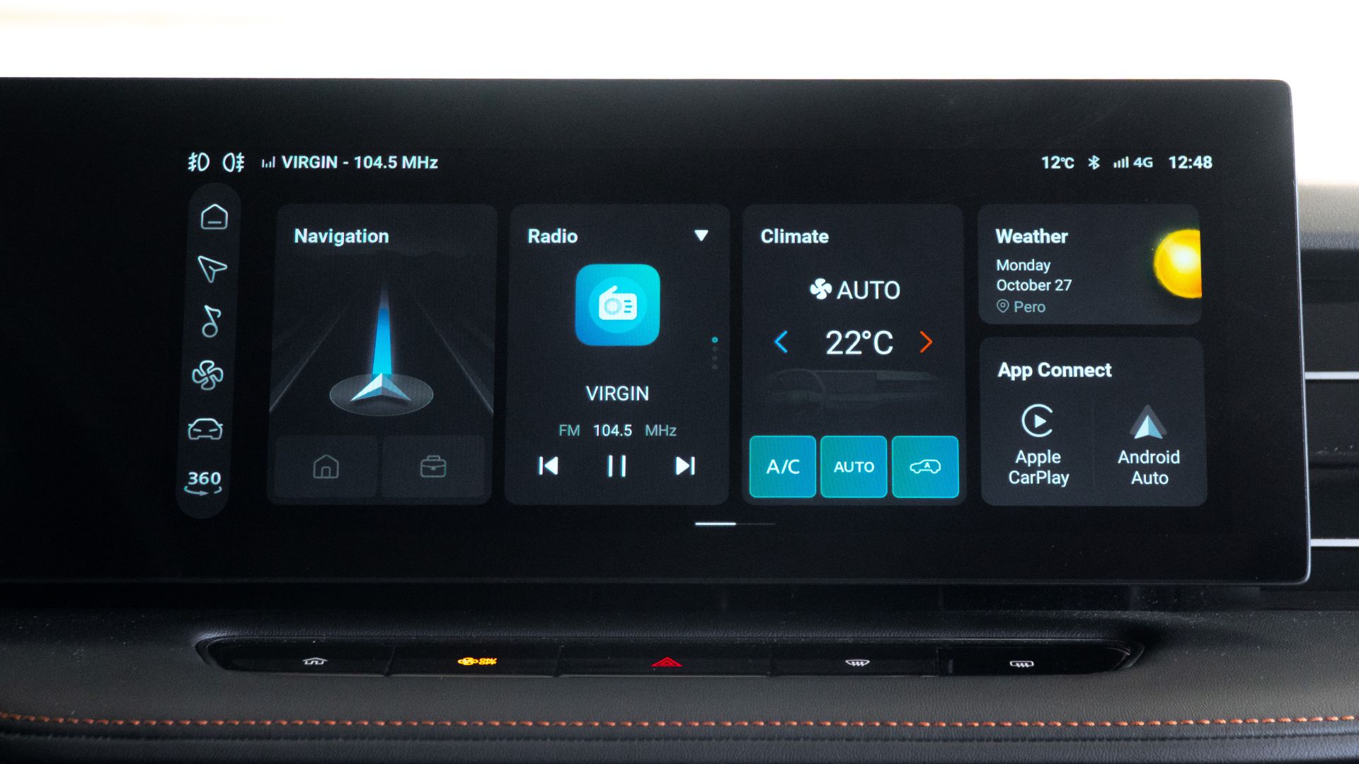 Bene i due display da 12,3'' che formano la plancia digitale: nitidi e luminosi, con Apple CarPlay, Android Auto e persino il navigatore che fanno parte delle dotazioni di serie. Peccato che tanto i comandi vocali quanto il navigatore parlino solo inglese, francese, tedesco o spagnolo: niente italiano.