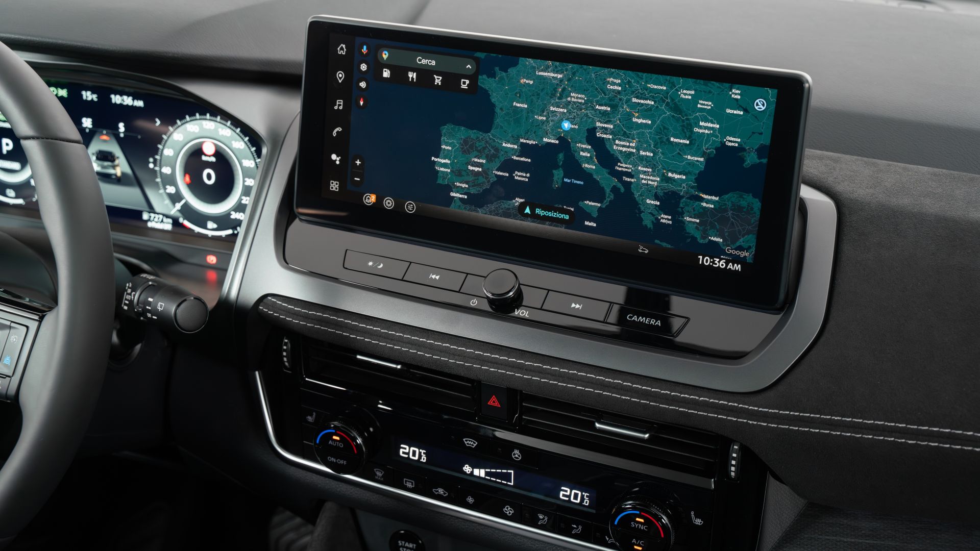 La strumentazione è digitale, ma con due schermi ben separati (da 12,3 pollici sugli allestimenti top), con la potenza di Google Automotive integrato a dare i comandi vocali di Google Assistant, la navigazione di Google Maps e le app di Play Store. Android Auto e Apple Carplay sono di serie, entrambi anche in versione wireless.