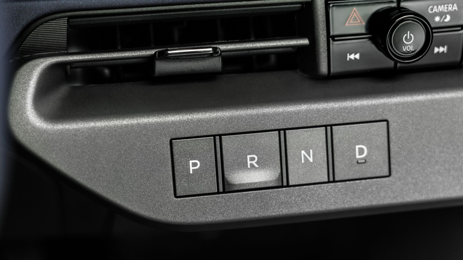 Comodi i grandi tasti per selezionare la marcia posti al centro della plancia, che lasciano libero il mobiletto centrale: in questo modo, plancia e tunnel sono ben separati e il pavimento è piatto tra i sedili anteriori come tra i posteriori.