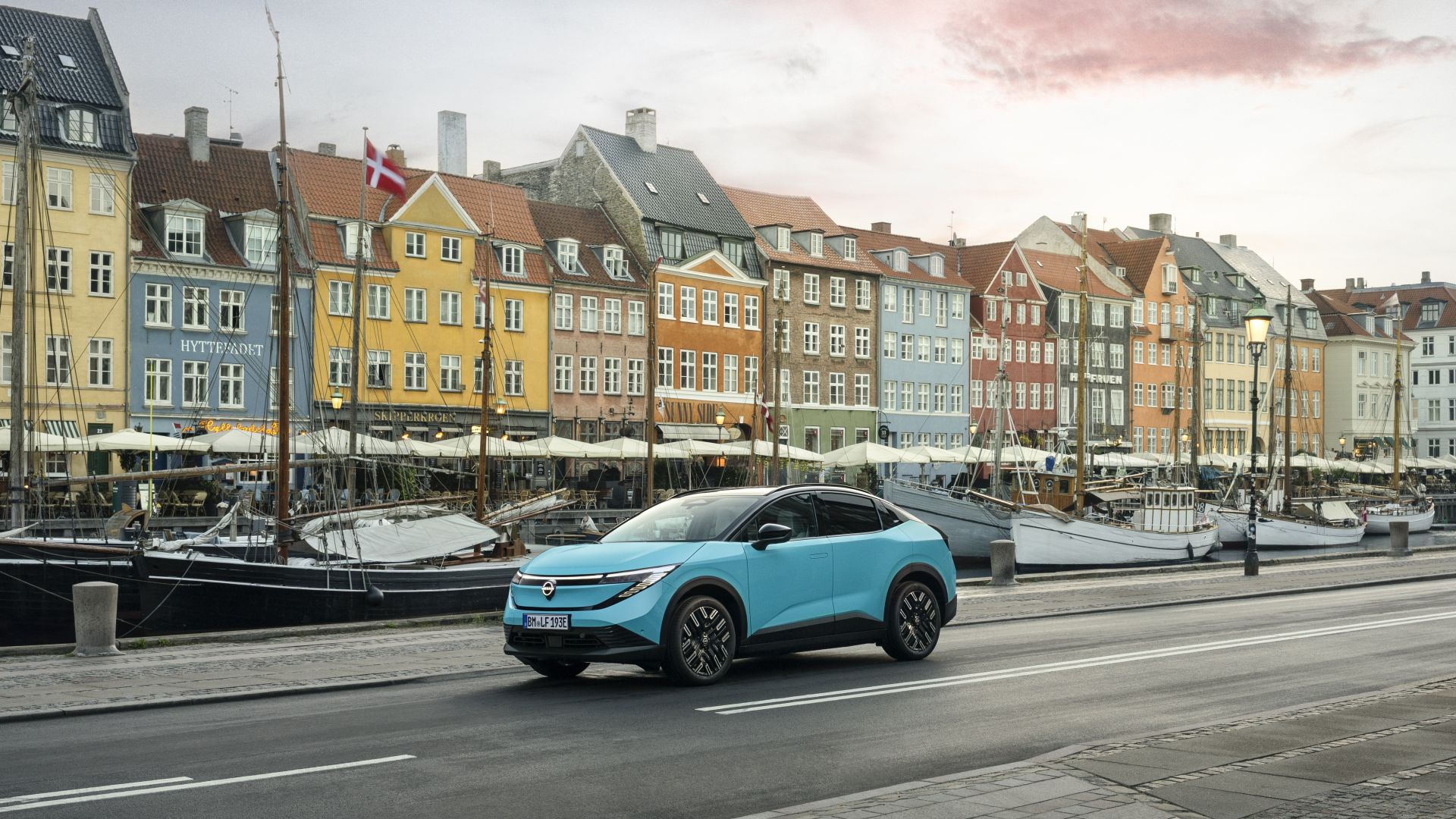 La modernità si coglie soprattutto nel frontale, con quella luce a LED che l'attraversa da un lato all'altro, e nella calandra chiusa che ben si addice a un'auto elettrica. Del resto, le prese d'aria sono robotizzate, per chiudersi quando non serve la massima ventilazione, a vantaggio dell'aerodinamica.