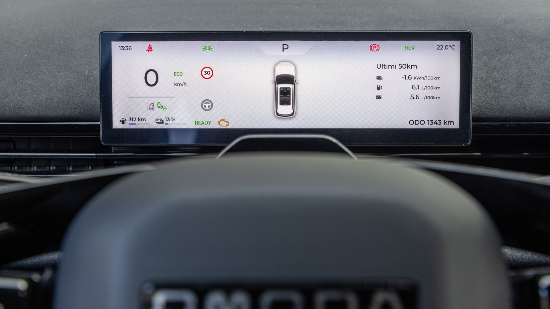 Sul nostro percorso di prova, il MotorRing, e con le batterie ridotte al lumicino ho registrato numeri da utilitaria: 5 l/100 km in città (ovvero 20 km/l tondi), 4,2 l/100 km nei tratti extraurbani e un onestissimo 6,3 l/100 km in autostrada.