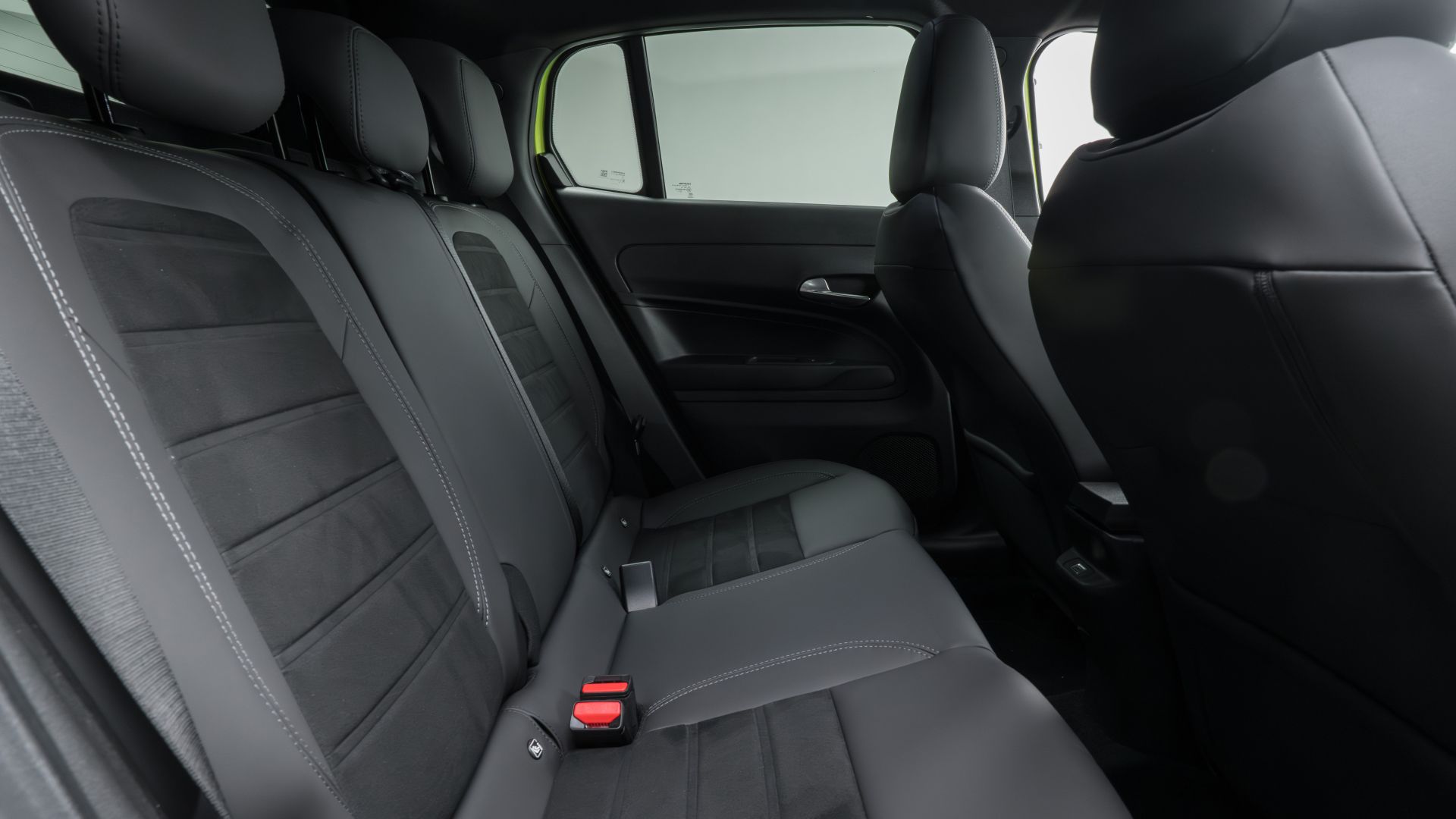 La sua natura sportiva è sottolineata dalle finiture brunite o in nero lucido all’esterno e anche all’interno. Completano il look sportivo i cerchi da 18 pollici e i sedili sportivi regolabili elettricamente e riscaldabili - quello di guida anche con funziona massaggiante - rivestiti in tessuto Feeltek, che al tatto ricorda l'Alcantara. Gli anteriori presentano anche un materiale nero specifico nero per la fascia che percorre da parte a parte la plancia.