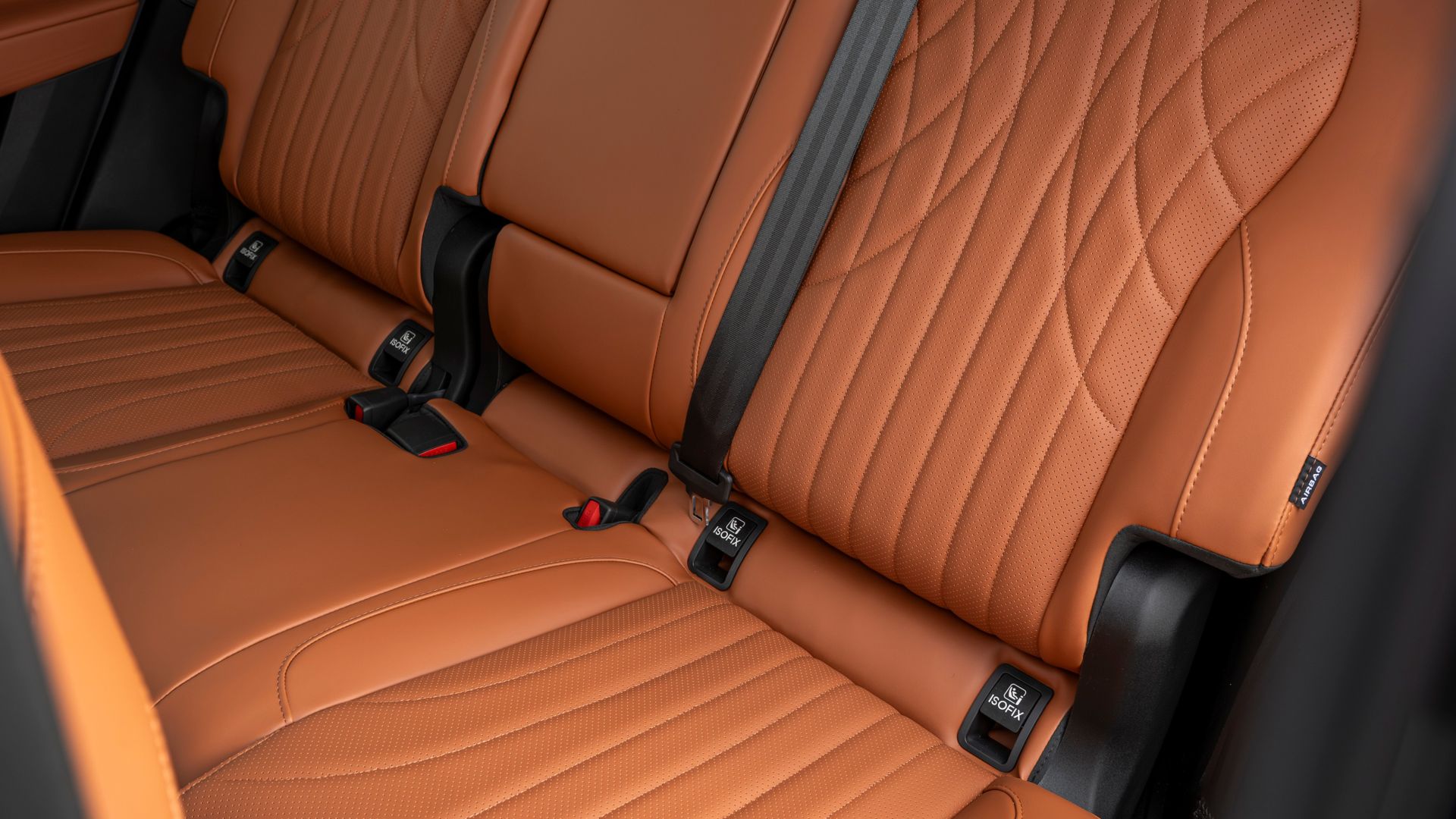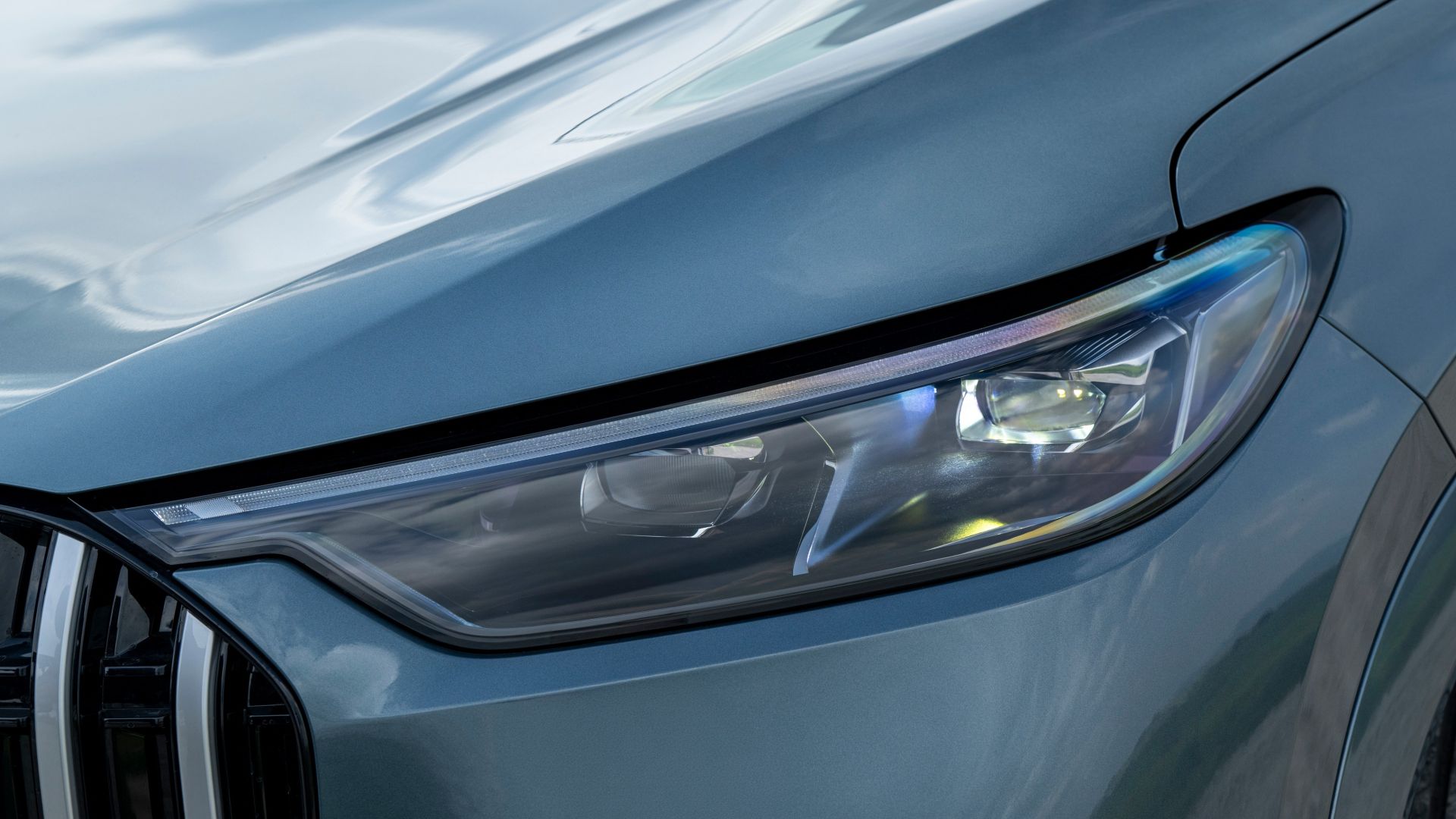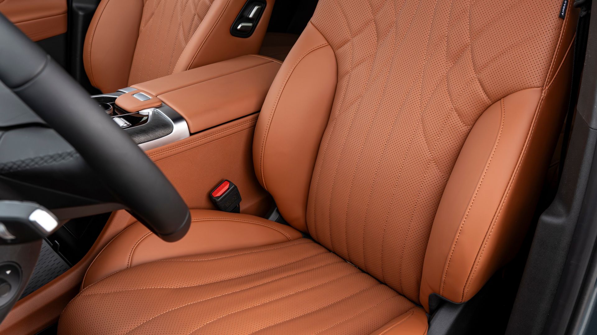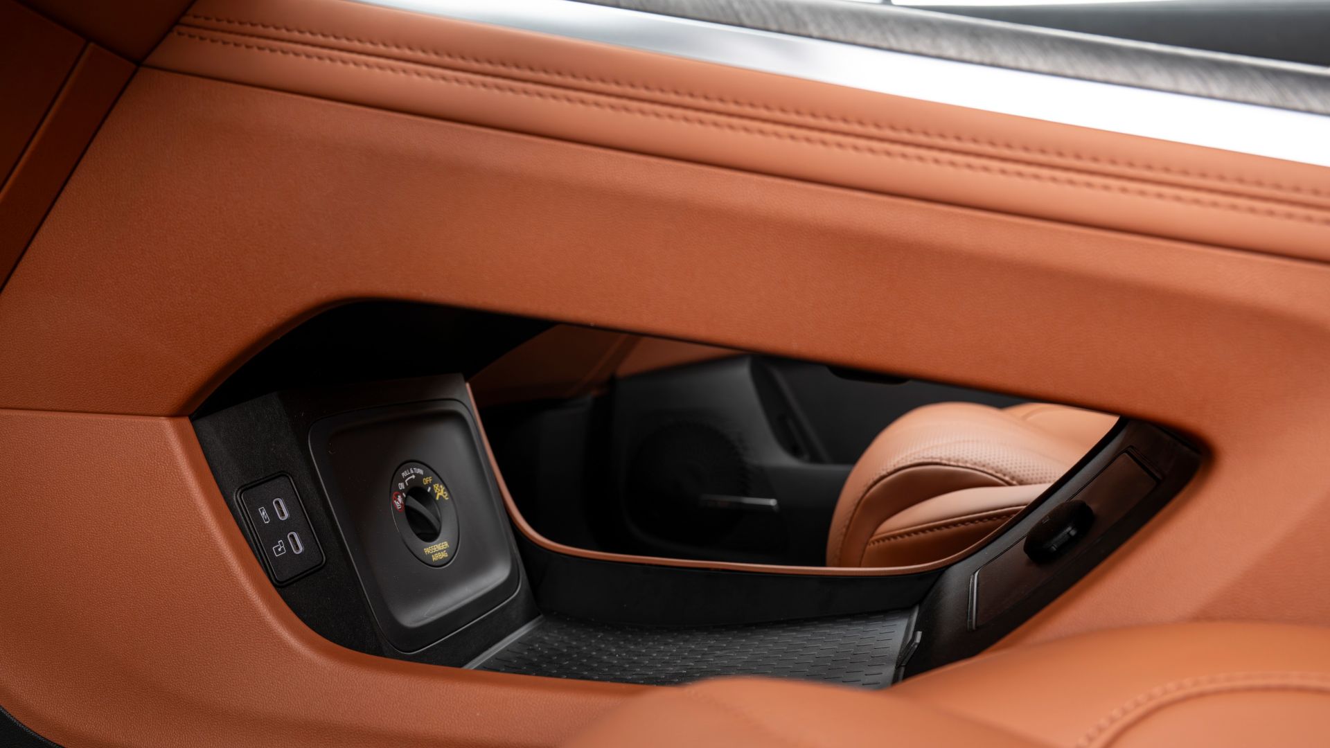 Dentro, l’effetto è quello di una business lounge con la patente da fuoristrada: pelle Nappa, velluto sul cielo, doppio schermo da 12,3”, un head‑up display in realtà aumentata da 50 pollici (sì, cinquanta), un sistema di climatizzazione con 25 bocchette che sembra progettato per raffreddare un data center. Atmosfera digital e calda al tempo stesso.