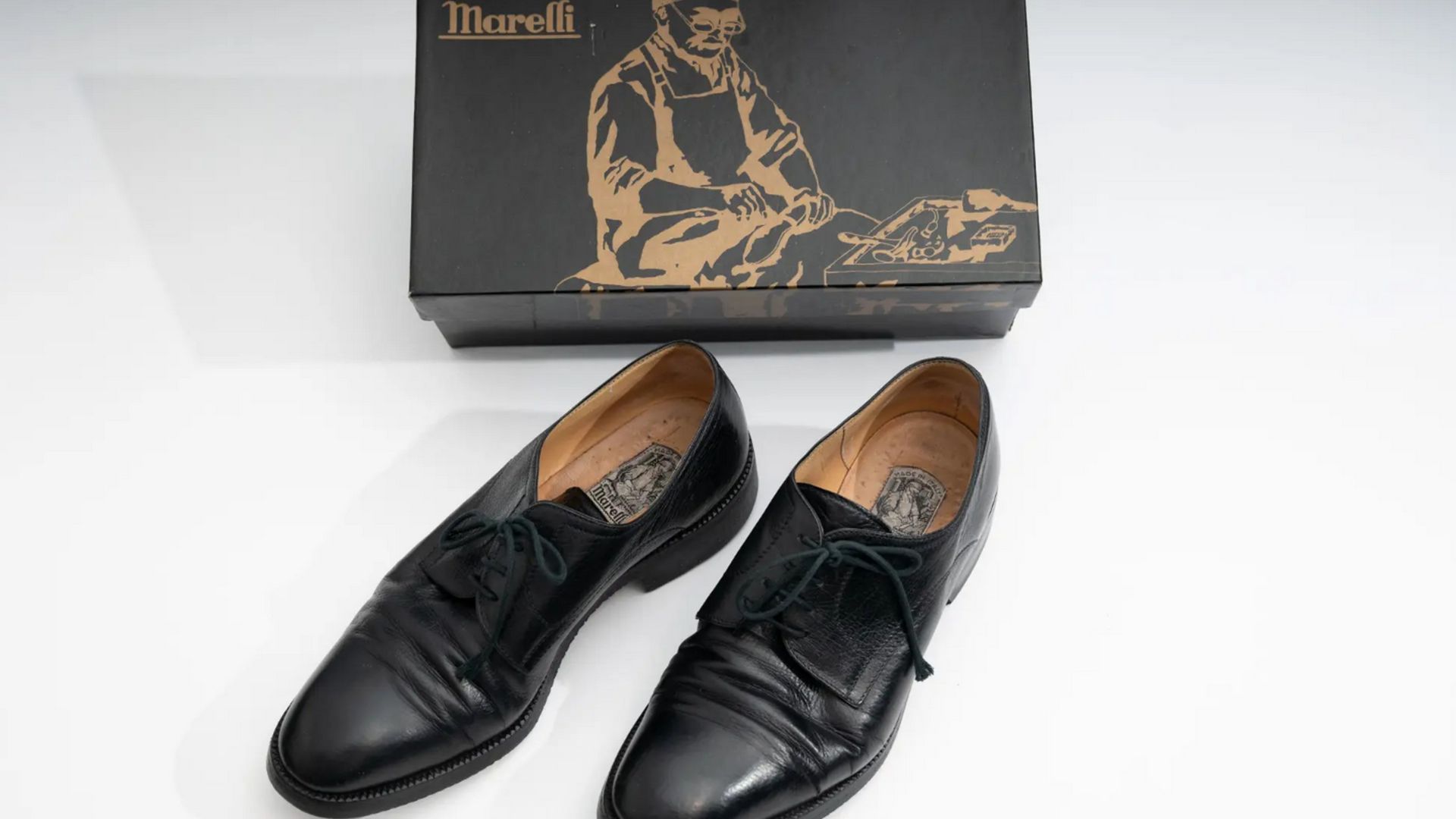 Nel pacchetto, anche un paio di scarpe Marelli fatte su misura, consumate quanto basta per raccontare una vita passata tra uffici, officine e box.