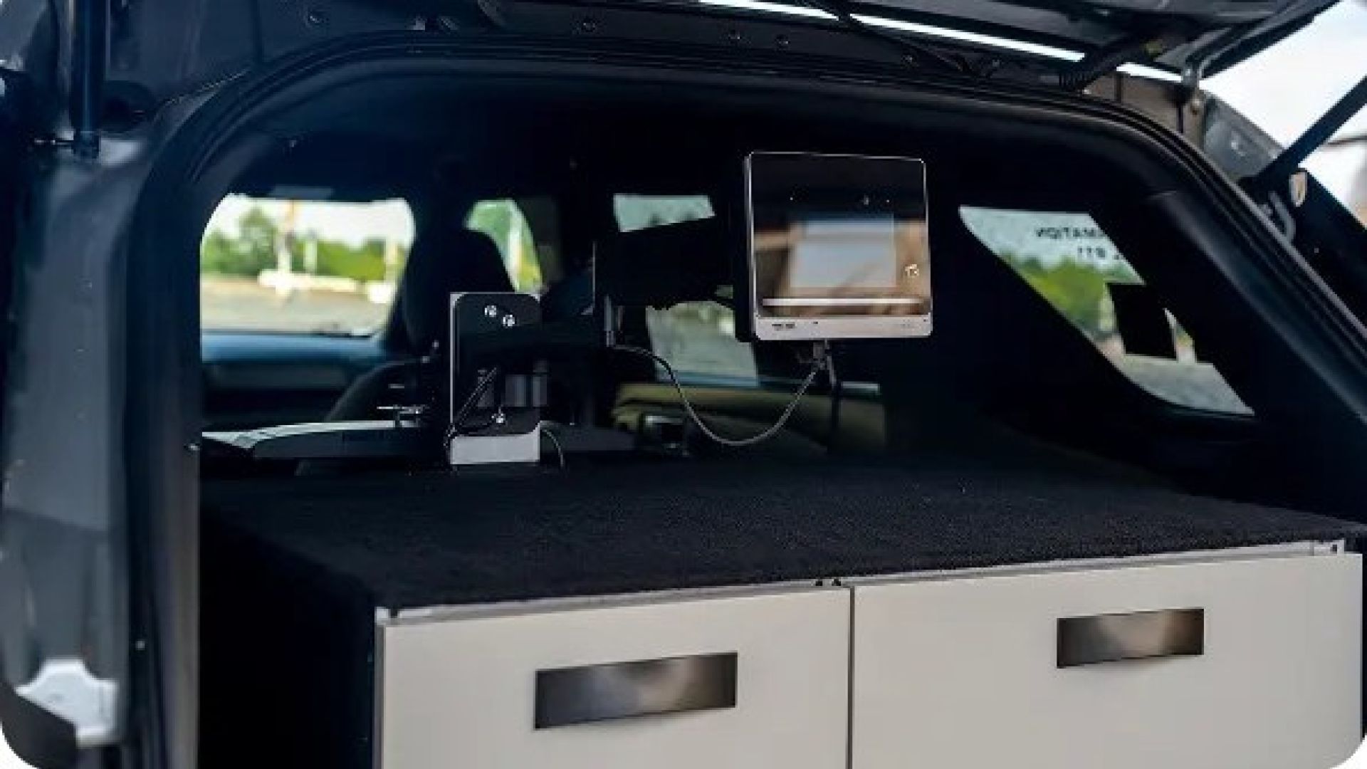Dentro, c’è più roba che in una valigia a fine vacanza: telecamere a 360°, visione termica, microfoni direzionali, un sistema che legge le targhe dei veicoli in sosta e persino un mini drone da ricognizione, legato al tetto come un aquilone. O come un cagnolino al guinzaglio, se vogliamo rimanere in tema.