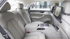 GENTE DI UN CERTO LIVELLO A produrre le A8 L Security pensa un manipolo di uomini adeguatamente formati che impiegano ben 450 ore per completare tutta la parte di blindatura sul telaio, prima di passare all'assemblaggio finale. Il reparto motori spazia dal 4.0 TFSI da 435 cv ai 500 tondi del W12, i pneumatici sono resistenti alle forature e le tarature dell'assetto sono state pensate per sopportare il surplus di peso.