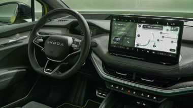 Il sistema Intelligent Park Assist, gestibile tramite l'app MyŠkoda, permette poi il parcheggio remoto del SUV elettrico ad alte prestazioni, controllando la manovra dallo smartphone.