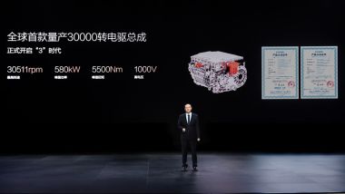 BYD Super e-Platform, si diceva, introduce anche un nuovo motore elettrico, progettato internamente, in grado di raggiungere una velocità massima di rotazione di 30.511 giri/min, la più alta mai raggiunta da un motore elettrico di serie.