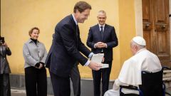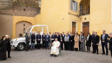 Mercedes G 580 Papamobile: la delegazione al completo con il Papa durante la consegna
