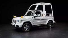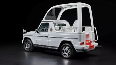 Mercedes G 580 Papamobile: lo speciale SUV elettrico donato al PonteficeESEMPLARE SU MISURA PER PAPA BERGOGLIOIl modello speciale è stato sviluppato in stretta collaborazione con il Vaticano stesso e presenta una carrozzeria in bianco perla e un design di tipo open top, cioè del tutto scoperto nella parte posteriore che ospita il Pontefice. Ciò ha richiesto ampie modifiche e Mercedes ha fatto sapere che la portiera posteriore sinistra è stata rimossa, ricostruita e ''saldata senza soluzione di continuità nella carrozzeria''. Invece, quella posteriore destra rimane, ma è stata completamente rinnovata e ora si apre controvento. Utilizzando quella porta si accede a una piattaforma elevata, dotata di un sedile girevole posizionato centralmente e regolabile in altezza. Sembra più un mobile che un sedile per auto e Mercedes ha affermato che consente al Papa di ''muoversi in modo flessibile'' e di rivolgersi al pubblico da diverse angolazioni. Oltre alla lussuosa sedia papale, dietro di essa si trovano due sedili a sbalzo. La Classe G ha anche gradini posteriori e piattaforme posteriori per il personale di sicurezza. Se le previsioni del tempo sono avverse, la Geländewagen elettrica può essere dotata di un hardtop che fornisce un pizzico di protezione.