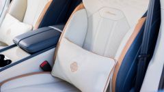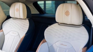 GLI INTERNI Ma la caratterizzazione di questa nuova serie passa soprattutto per gli interni. A bordo, infatti, troviamo la nuova impiallacciatura Pale Pinstripe, ispirata ai ponti in teak chiaro degli yacht. Si accompagna a una selleria dedicata, con una sofisticata tavolozza di colori per gli interni che comprende pelle Brunel per i dettagli e pelle Linen per la maggrior parte del rivestimento. Il ricamo speciale Riviera Collection ''knot'' sui poggiatesta e il ricamo ''Azure'' sugli schienali dei sedili, con l’accent colour Autumn, sottolineano l'attenzione ai dettagli e l'esclusività di questa collezione, che si distingue per i battitacco con logo Riviera su misura e per i tappetini Mulliner in Brunel con micropiping Autumn.