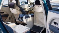 LE TECNOLOGIE I particolari sedili airline seat di Bentley offrono un livello di personalizzazione senza precedenti, grazie alla regolazione a 22 vie, e per loro sono previsti cuscini in pelle Linen con ricamo Riviera, mentre il sistema audio Bentley Diamond Illumination, ''Bang&Olufsen for Bentley'', la specifica Mood Lighting e le opzioni di intrattenimento posteriore si combinano per creare un'atmosfera all'altezza delle aspettative. Che, tanto per capirci, non possono essere che stellari su un'auto che ha le portiere posteriori con chiusura elettrica e tavolini da picnic con inserto in pelle Brunel a corredo. Il prezzo? Meglio non chiedere...