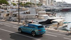 Bentayga Extended Wheelbase (EWB) Azure Riviera Collection reimmagina il SUV Bentley a passo lungo con temi che rendono omaggio alla tecnologia e all’eleganza dei moderni yacht. La carrozzeria è verniciata nel particolare colore blu Egeo ''che richiama le tonalità profonde del Mediterraneo come quelle della Costa Azzurra'', dicono gli uomini di Crewe. Dello stesso colore i mancorrenti sul tetto, mentre cerchi da 22'' e una specifica Blackline evidenziano la silhouette della vettura.