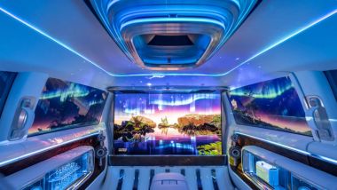 Sette proiettori che utilizzano i finestrini come superfici di proiezione per un’esperienza a 360°