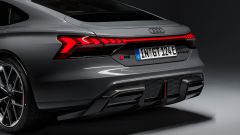 All’esterno, Audi ha introdotto due nuove opzioni per il paraurti: nuova S e-tron GT presenta un motivo a “maschera” più grande, dettagli triangolari e una griglia inversa con nuova grafica. Dal canto suo, la coppia di modelli RS si distingue per prese d'aria più grandi, un design della griglia più sportivo e nuovi inserti a forma di L rifiniti in nero o fibra di carbonio. Le RS presentano anche un nuovo inserto del diffusore posteriore con un riflettore verticale, oltre a un set unico di ruote forgiate da 21 pollici progettate per emulare le iconiche ruote ''Avus'' dei precedenti modelli Audi Sport. Un'esclusiva del modello di punta RS e-tron GT Performance sono infine gli elementi in “carbonio tagliato” attorno alla griglia anteriore, alle minigonne laterali e al diffusore posteriore. Trattasi di un materiale composito mai utilizzato prima su un modello Audi: in precedenza, era stato impiegato solo su supercar di fascia alta come le varianti ad alte prestazioni della Lamborghini Huracan.
