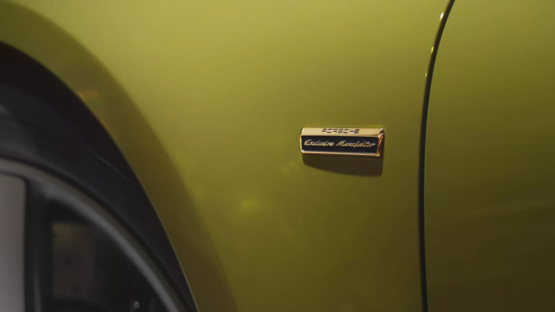 Badge ''Porsche Exclusive Manufaktur'' placcati in oro sui parafanghi anteriori