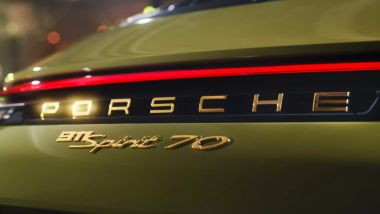 Porsche 911 Spirit 70: il logo dorato sulla coda della supercar tedesca