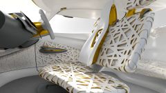 NIDO D’UCCELLO Di base una crossover (e ti pareva...) incrociata geneticamente con un buggy (avete visto come sporgono dai passaruota le ruotone?). Se il look della Renault Kwid vi pare bizzarro da fuori, dove la carrozzeria si tinge con due tonalità di grigio e spruzzate di giallo, richiamo alle spezie indiane, e le portiere a farfalla (con comando elettrico) dovete ancora scoprire gli interni. Ispirati addirittura a un nido d’uccello, nella realizzazione a fasce della base dei sedili e dei pannelli-porta, e configurati con un inedito schema 3-2 (o 1-2-2, ad essere ancora più precisi) che piazza tre passeggeri in prima fila con il guidatore al centro in posizione leggermente avanzata. Perché mai al centro? Fondamentalmente per dimostrare che Kwid è un progetto adattabile al qualsivoglia mercato, che si guidi a destra oppure a sinistra per consuetudine.