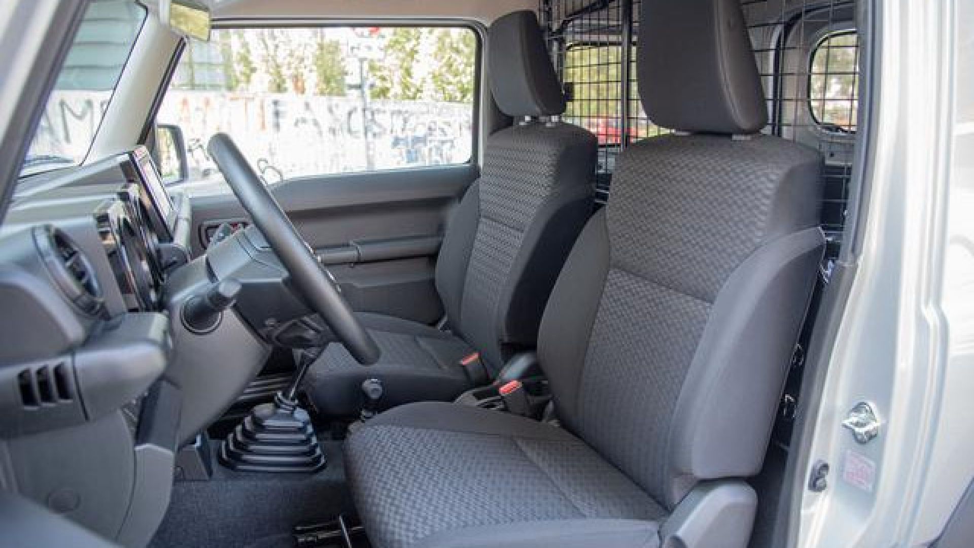 Suzuki Jimny Mata: l'abitacolo in configurazione omologata Pro (N1)UN LOOK DISTINTIVOMa, tornando al Jimny speciale, il suo look è caratterizzato da un equipaggiamento esclusivo. Il primo elemento che lo rende subito riconoscibile è la livrea bi-color argento e nero. La carrozzeria è impreziosita dalle decal 又 “MATA”e originale è anche la griglia frontale vintage che fa da cornice alla scritta Suzuki. Sul davamti si trova una protezione che completa il paraurti aggiungendo “muscolosità” al look. Le stesse funzioni sono svolte dagli elementi laterali superiori e inferiori, che proteggono da piccoli urti e sfregamenti. Ci sono poi ulteriori protezioni in alluminio per differenziale e sottoscocca, essenziali per preservare i componenti meccanici durante le escursioni off-road sui terreni più impegnativi. Restando nella zona inferiore della vettura si possono notare i paraspruzzi in gomma anteriori e posteriori, che proteggono da fango, acqua e detriti. A completare la personalizzazione esterna ci sono infine la copertura rigida per la ruota di scorta e cerchi in lega dal design sportivo. L’auto viene inoltre fornita con un secondo set di cerchi per l’utilizzo di pneumatici invernali o specialistici.
