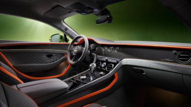 PERFORMANCE Il nuovo propulsore plug-in consente a nuova Continental GT Speed un'accelerazione ancor più impressionante, con un tempo da 0 a 100 km/h in 3,2 secondi e una velocità massima di 320 km/h. Ricordiamo che l’auto pesa ben 2.495 kg. Per contribuire a contenere tutta quella massa, Bentley ha adottato la stessa tecnologia di ammortizzatori a doppia valvola adottatato da molti altri marchi di fascia alta, qui abbinata a un sistema di sospensioni pneumatiche a doppia camera che dovrebbe offrire una gamma ancora più ampia tra comfort e controllo. Presenti anche un sistema antirollio attivo da 48 V, un differenziale a slittamento limitato a controllo elettronico, un raffinato sistema di sterzo della ruota posteriore da 1,5 gradi che aiuta la stabilità alle alte velocità e la manovrabilità a bassa velocità. I freni sono un set di dischi in acciaio da 420 mm di serie, con la disponibilità opzionale di dischi carboceramici da 420 mm e pinze anteriori a 10 pistoncini. Un vantaggio inaspettato del peso extra derivante dal posizionamento della batteria verso la parte posteriore dell’auto è poi una distribuzione del peso favorevole (49:51) tra la parte anteriore e quella posteriore.