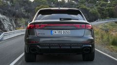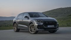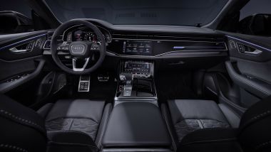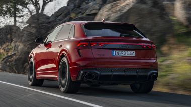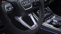 FRENI Per il modello standard, enormi dischi anteriori da 420 mm con pinze a 10 pistoncini e dischi posteriori da 370 mm. Da par suo, RS Q8 Performance monta di serie dischi carboceramici da 440 mm all'anteriore e 370 mm al posteriore. La Performance è disponibile anche con un set di cerchi in lega da 23 pollici, più leggeri delle ruote standard da 22 pollici.