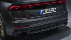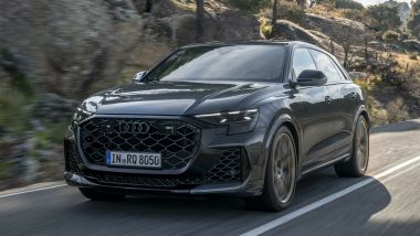 ''PERFORMANCE'' Chi cercasse il non plus ultra, farà bene a optare per la sorella arrabbiata RS Q8 Performance: potenza di 640 CV, coppia di 850 Nm, sprint 0-100 km/h in 3,6 secondi, velocità massima di 280 km/h, infine il doppio riconoscimento di SUV più performante mai realizzato da Audi e di modello termico Audi Sport più potente di sempre. Super motore, super voce: per RS Q8 Performance, sistema di scarico su misura e sound ancora più drammatico. Così la riconosci pure a occhi chiusi.