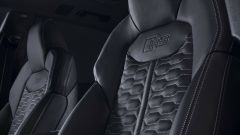DESIGN Dal punto di vista visivo, entrambi i modelli ottengono tre nuove opzioni di vernice metallizzata: Sakhir Gold, Ascari Blue e Chili Red (vedi foto di cover). Nuova RS Q8 standard include anche il nero lucido sugli specchietti retrovisori esterni, lo spoiler anteriore, le finiture dei finestrini e il diffusore posteriore, mentre RS Q8 Performance ottiene specchietti retrovisori esterni in carbonio opaco, dettagli specifici per lo spoiler anteriore e un diffusore posteriore grigio opaco. Per gli interni, tre pacchetti di design RS in rosso, grigio o blu. Sempre inclusi il volante in Alcantara e la microfibra Dinamica per console centrale e sedili sportivi traforati.