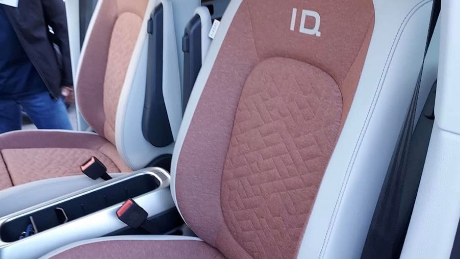 ID FAMILY FEELING I sedili guidatore e passeggero ricevono un rivestimento in tessuto premium bicolore dall'aspetto molto gradevole, col logo ''ID'' impresso anche negli schienali. Plancia e schermo di infotainment sembrano essere abbastanza simili - con le dovute individualità, che presto scoprireremo - a quelli che equipaggiano ID.4.